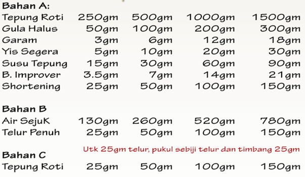 Nota: Untuk shortening, elok cari shortening brand adela keluaran felda. Banyak dijual di shopee. Yis guna brand saf instant. Tepung roti cari brand diamond.